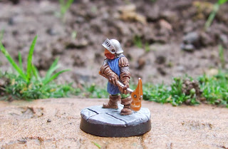 This is the stripped, changed and re-painted Oakley from Hasslefree Miniatures or Ash from The Evil Dead movies. Removed his axe and the leather holster for his shotgun and added the chainsaw hand. Re-painted in the traditional colours.